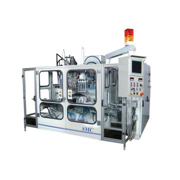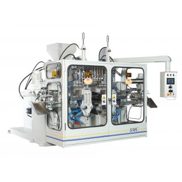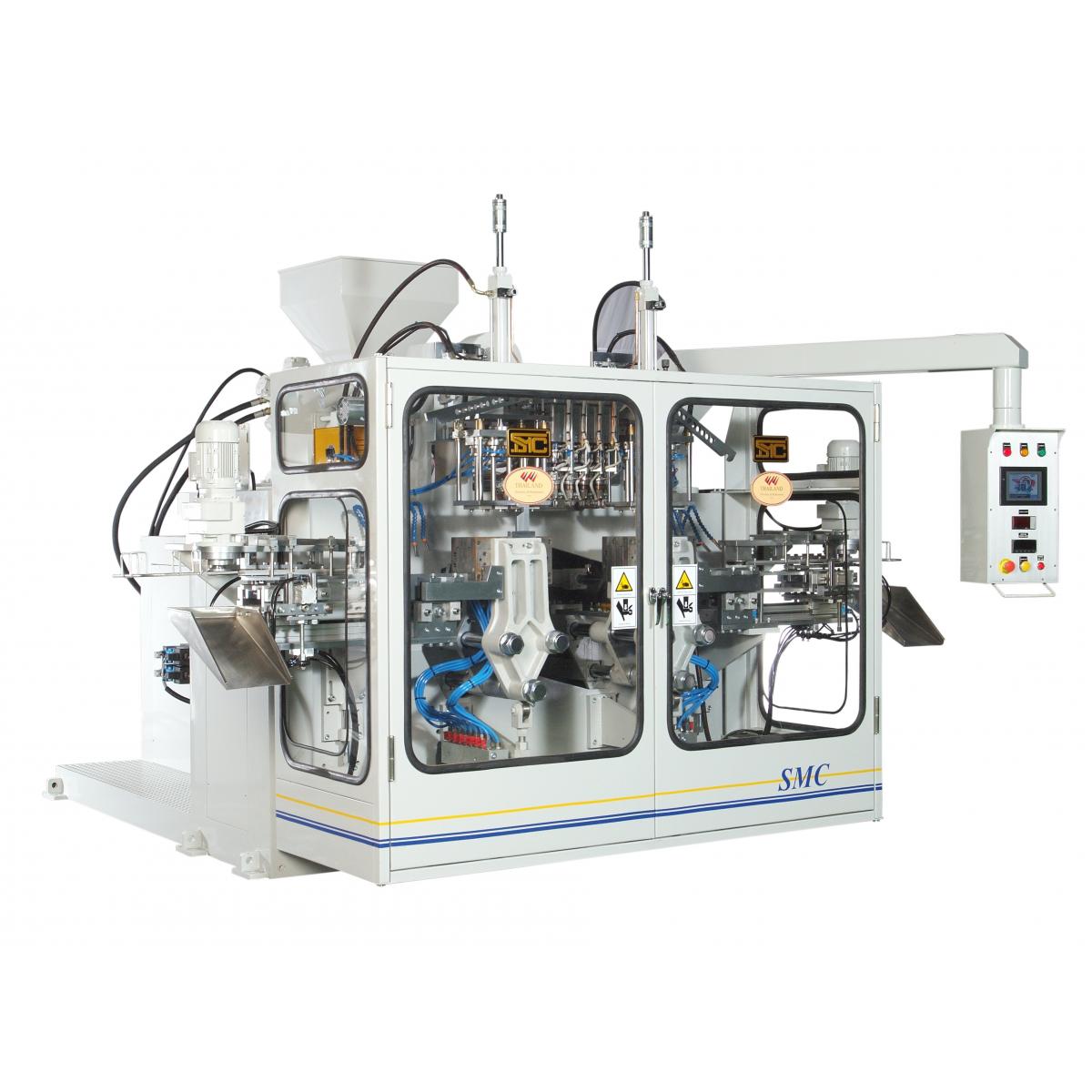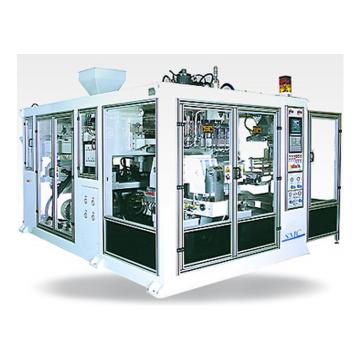Линейный ход узла смыкания и каретки по направляющим рельсам с управлением перемещения клапанов пропорционального действия. Высококлассная машина для массового производства изделий среднего размера от 1 литра до 10 литров.