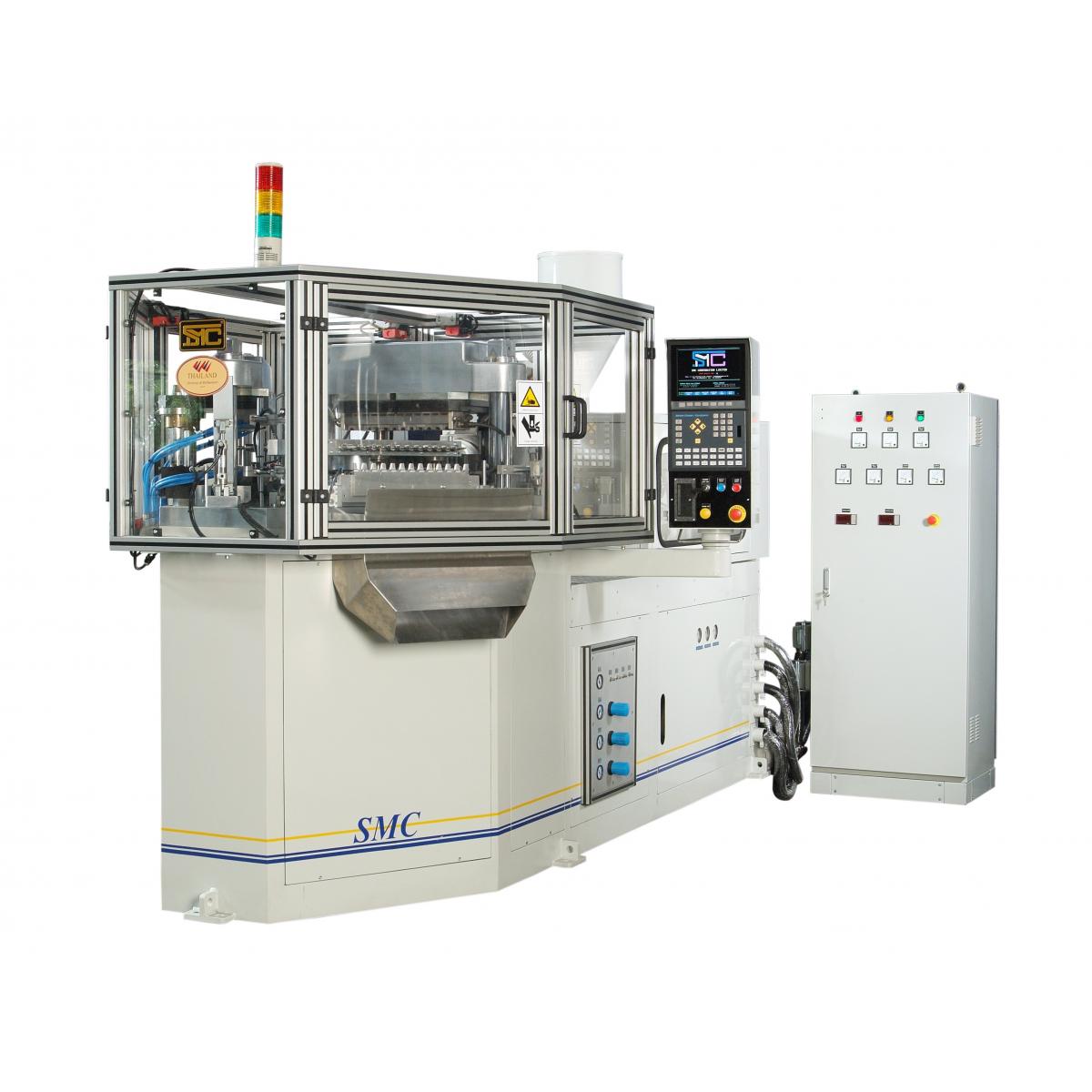 Высокоскоростная инжекционно-выдувная машина с горизонтальной системой впрыска с возможностью установки 20-24 гнёздных пресс-форм для мелких изделий (например, глазные капли 5 мл). Машина для массового производства флаконов применяемых в фармацевтической, косметической, пищевой и промышленных отраслях.